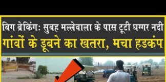 मल्लेवाला के पास टूटी घग्गर| मचा हड़कंप| गांवों डूबने का खतरा|...