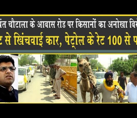 सिरसा में किसानों का अनोखा प्रदर्शन, ऊंट से खिंचाई कार, पेट्रोल के रेट 100 से पार
