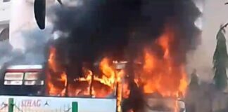 फतेहाबाद में सवारियों से खचाखच भरी निजी बस में लगी आग