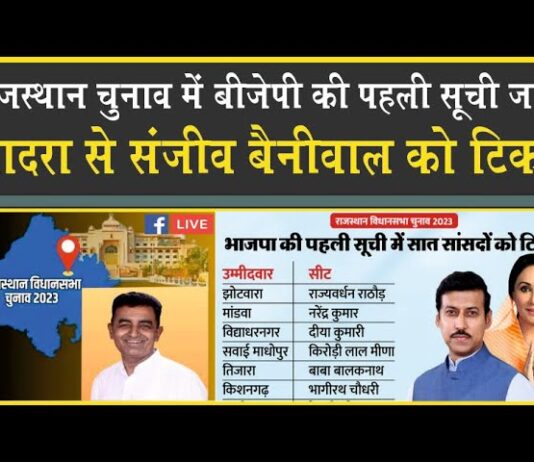 राजस्थान में बीजेपी की पहली लिस्ट| भादरा से संजीव बेनीवाल को दिया टिकट| Rajasthan Election 2023|
