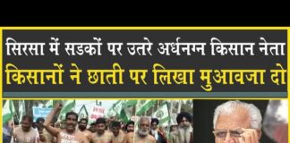 Sirsa में किसानों का अर्धनग्न प्रदर्शन, छाती पर लिखाया ‘बकाया मुआवजा...